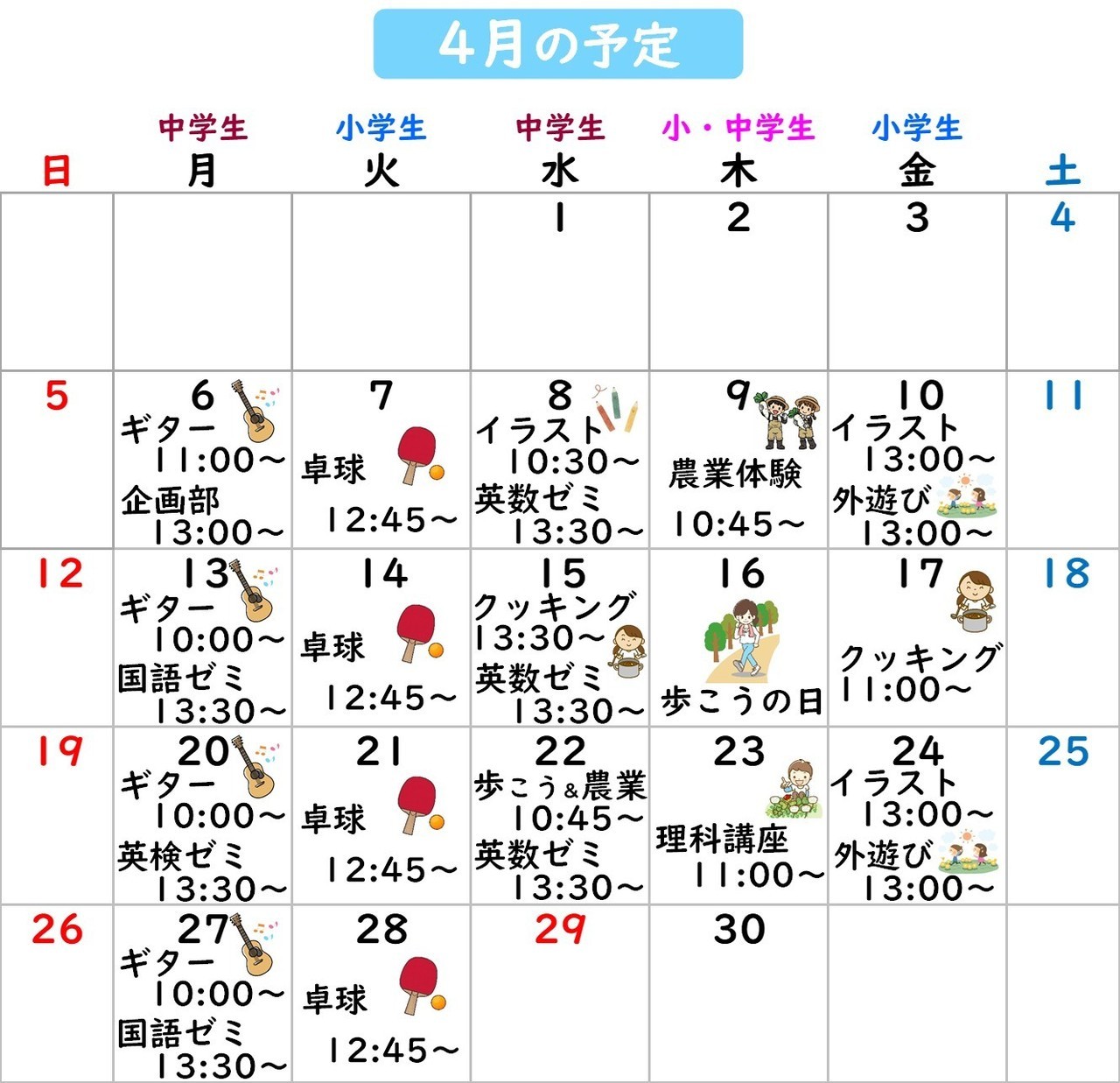 ⭐️3月16日 お知らせに「4月の予定」をアップしました。