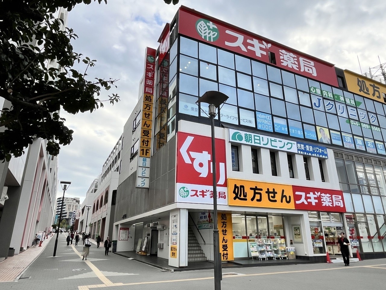 バスのロータリーの先にスギ薬局が入っているビル(佐藤ビル)があります。ここの3Fにコメットセミナーがあります。まずビルの左側面にある入口へ向かって下さい。写真では外階段が見えていますが、その階段は利用しません。↓