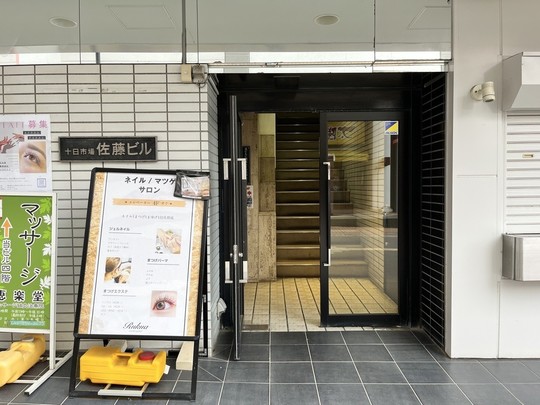 佐藤ビルの入り口です。入るとエレベーターがありますので、3Fまで上がって下さい。↓