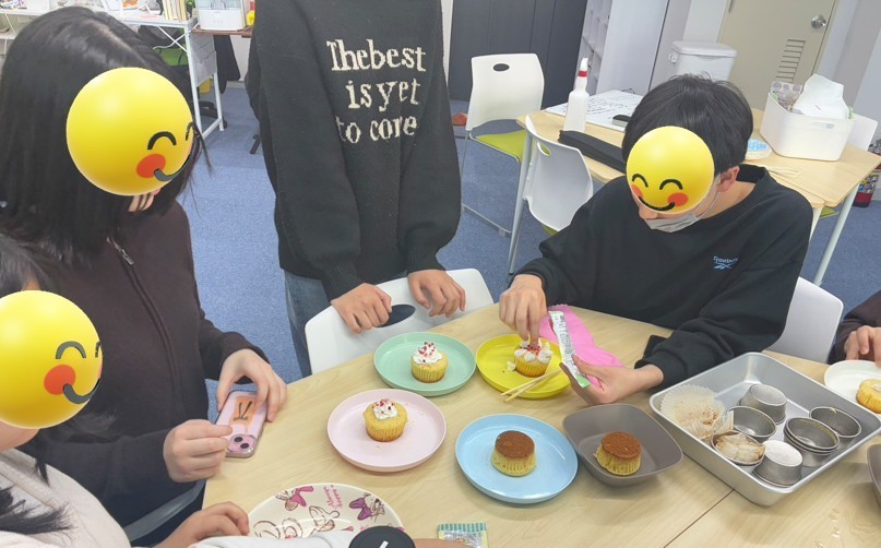 ゲームを楽しんだらスイーツ作りです。体を動かすとお腹が空きますが、そんな時のスイーツはおいしいですね!