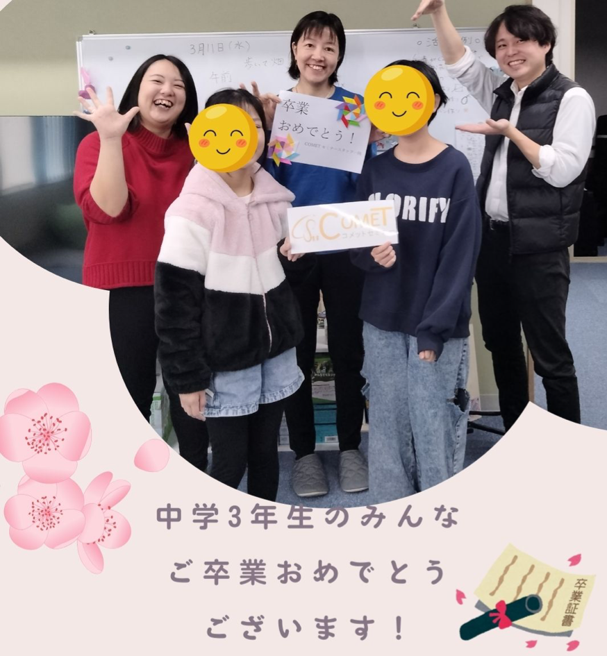 COMETに初めて見学や相談に来てくれた日の顔が思い出され、迷ったり、悩んだりする中で、その一歩を踏み出してここへ来てくれたその先に、それぞれが自分で進路を決め、中学校を巣立つことができた尊さを改めてかみしめています。